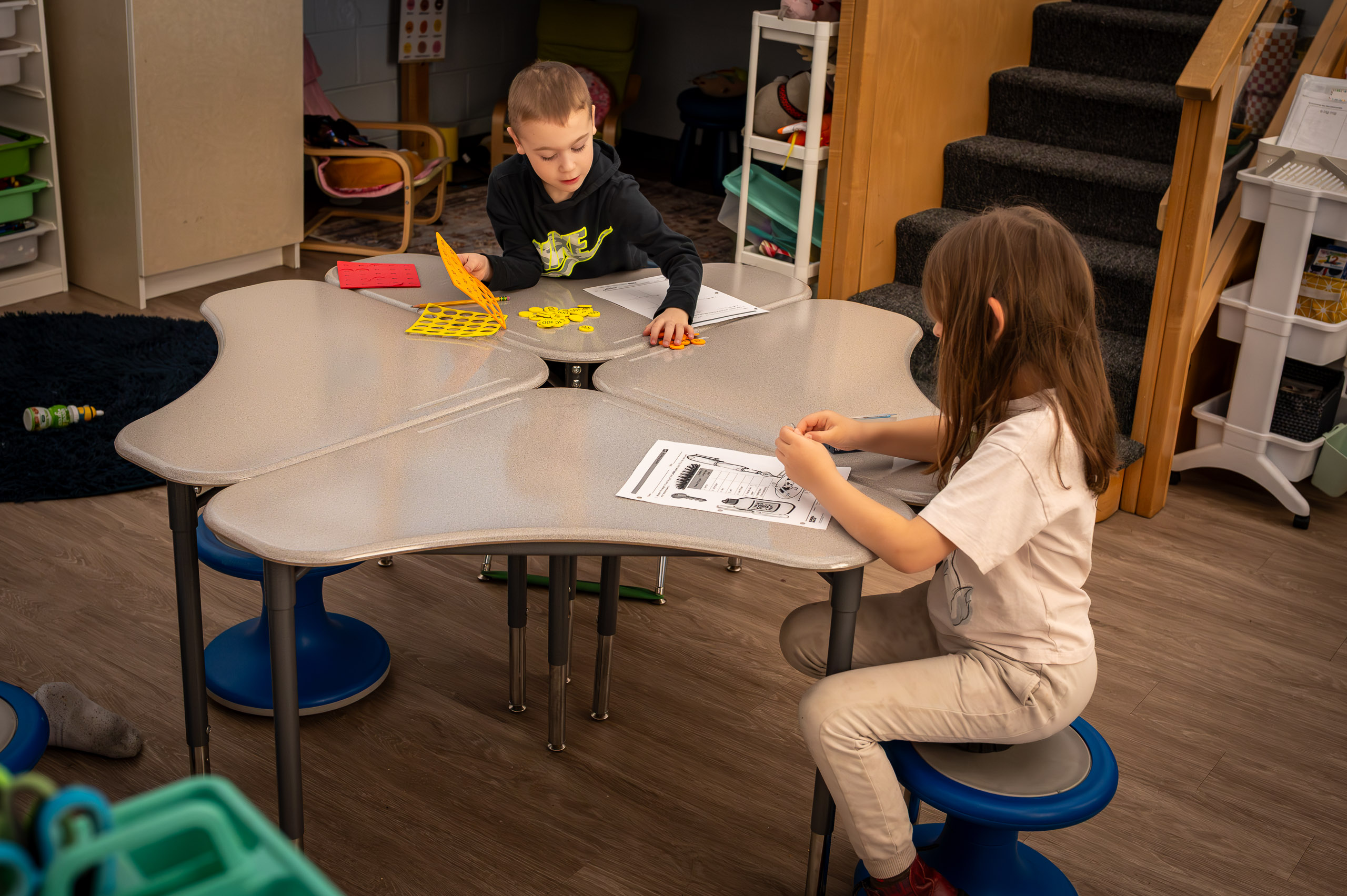 - Lower Elementary: More guided instruction, hands-on exploration, and supported independence