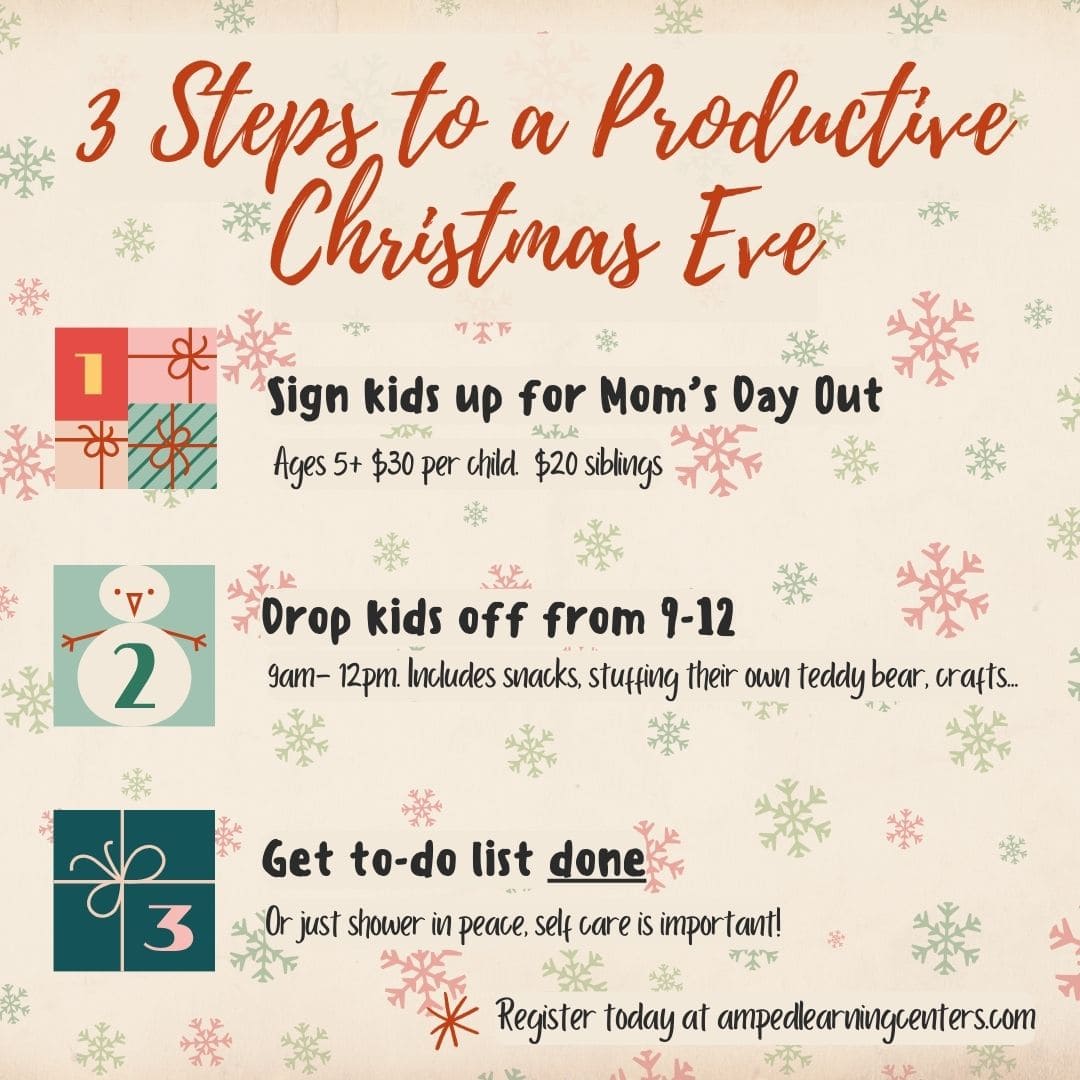 This Christmas Eve, take some time for yourself while we keep the kids entertained! Drop off children ages 5 and up at the AMPed Learning Center for a fun and festive morning they’ll love.