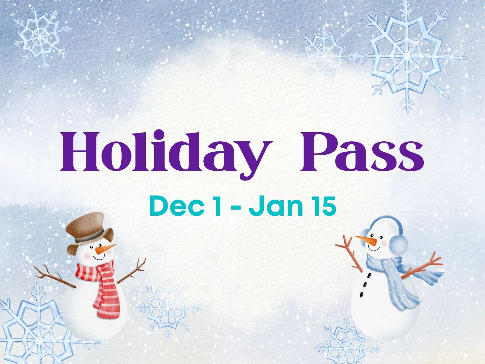 The Holiday Pass provides unlimited open play for one child from December 1 through January 15. This pass covers the entire holiday season, including winter break—perfect for staying active, getting out of the house, and creating fun memories during the colder months.